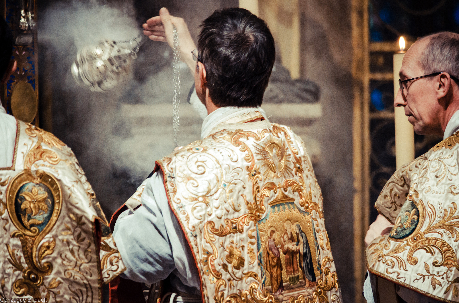 1. Sacerdotes usando casula e dalmática (ou alternando o uso destes paramentos na Missa da Ceia do Senhor, ao depor a casula no rito do lava-pés), como se fossem Bispos ou Abades.