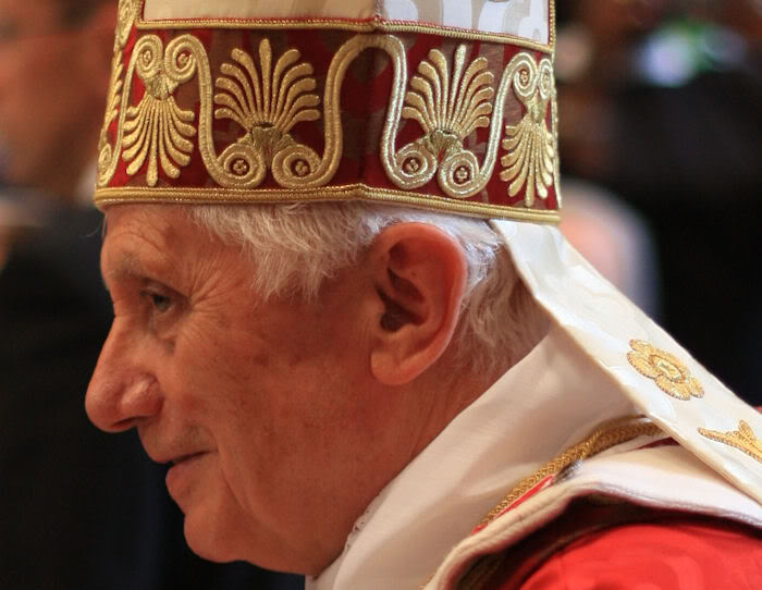 O Papa, ao sair do automóvel, foi saudado por seu Vigário para a Cidade de Roma, Cardeal Agostino Vallini, e pelo Reitor do Seminário don Concetto Occhipinti, 48 anos, nomeado em 26 de junho passado para a função vaga pela eleição episcopal do então reitor Giovanni Tani. É de se notar que Bento XVI, até antes de ingressar na capela principal do Seminário, esteve usando uma bengala, fato que não causa tanta surpresa vindo de um homem às vésperas dos 85 anos e a quem a fadiga vem sendo amplamente prevenida, por exemplo, com o uso de uma plataforma móvel no trajeto entre a sacristia e o altar da Basílica Vaticana.