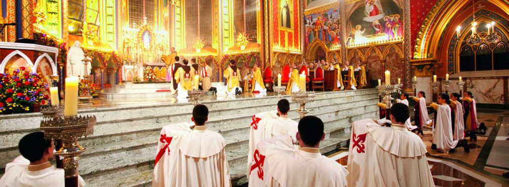 Na mais nova Basílica ocorre perpetuamente a adoração solene e perpétua ao Santíssimo Sacramento. Aos domingos, às 9h, acontece a recitação do Ofício de Leituras, das Laudes e da Hora Média (cerimônias da Liturgia das Horas), em gregoriano; às 11h é cantada Missa solene. Às 17h, é cantada outra Missa solene com a recitação das II Vésperas, com canto gregoriano novamente.