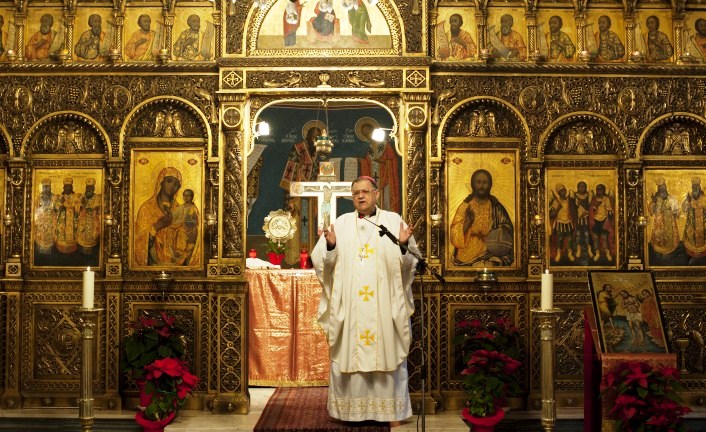 Fouad Twal, Patriarca latino de Jerusalém, durante missa em rito greco-melquita