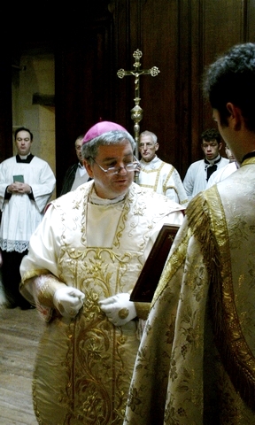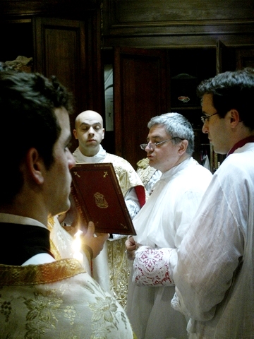 No vídeo a seguir, vemos Mons. Mario Oliveri, bispo de Albenga-Imperia, se paramentando na sacristia para a celebração da Missa. O Bispo mal toca nos paramentos: quem o ajuda quase em tudo são os diáconos e o mestre de cerimônas. É interessante se observar a beleza desta cerimônia que também pode ser feita as celebrações segundo os livros litúrgicos de Paulo VI, com as devidas e necessárias adaptações (no referente aos paramentos). Contudo, a filmagem termina antes da imposição das luvas, do anel e da mitra.