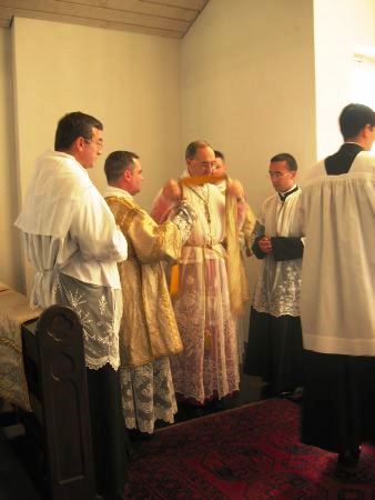 Ao vestir a casula: Senhor, que dissestes “Meu jugo é suave e o meu fardo é leve”, concedei-me que eu o leve de tal modo que possa obter a sua graça.